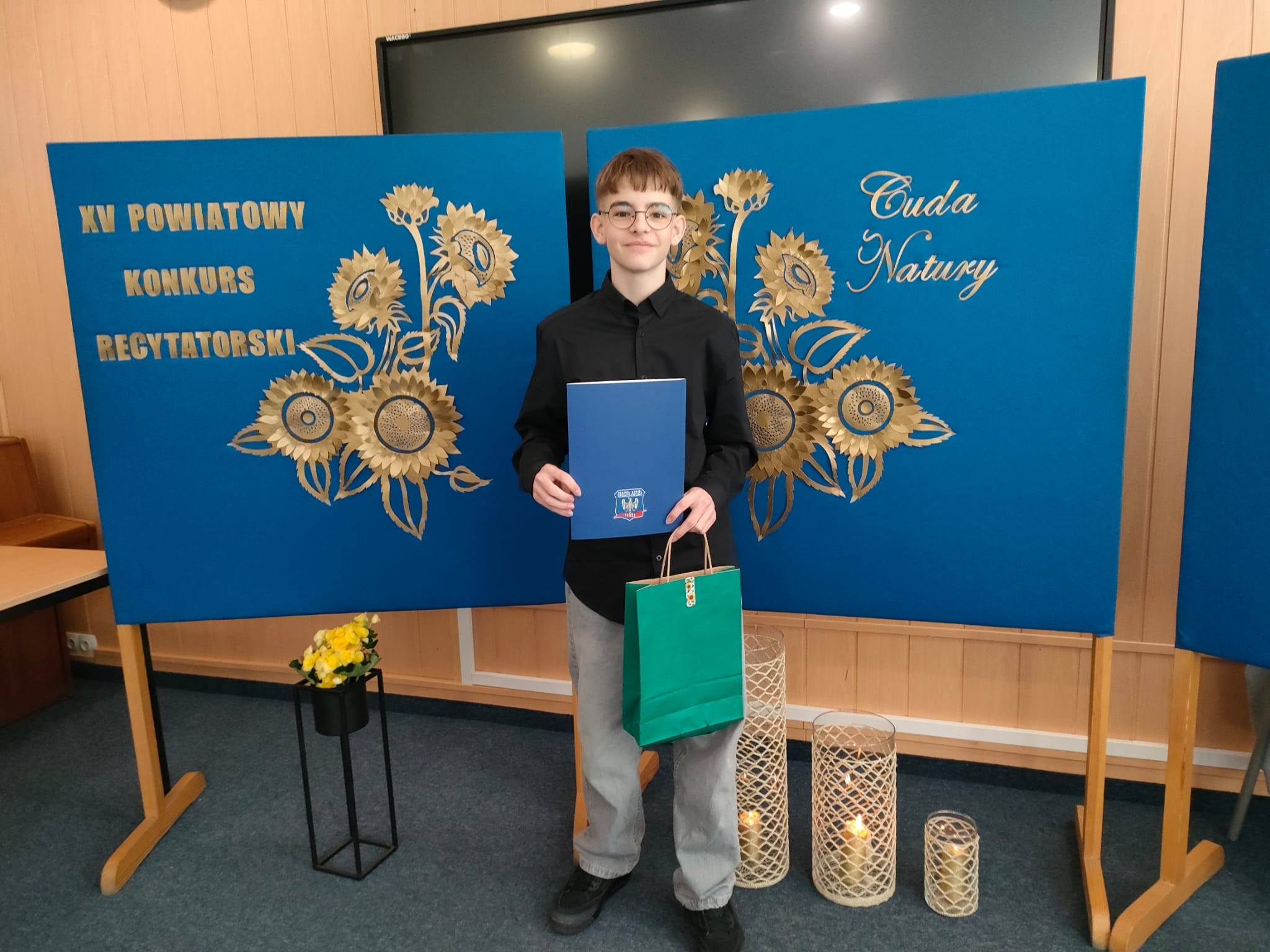 Aleksander Kabała, uczeń klasy 8b, reprezentował naszą szkołę w XV Powiatowym Konkursie Recytatorskim „Cuda natury”, który tradycyjnie organizowal ZSP-B w Tarcach. Jego wyjątkowa interpretacja wiersza „Las” sprawiła, że otrzymał zasłużone wyróżnienie. Gratulujemy i życzymy dalszych sukcesów!