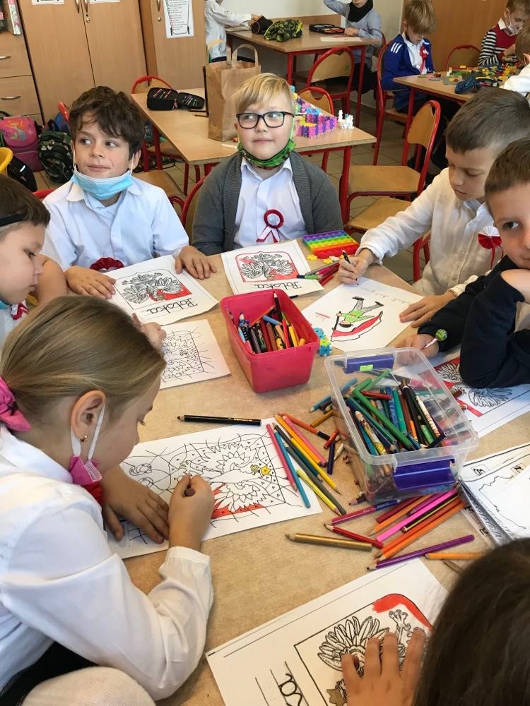 Przebywający w świetlicy szkolnej uczniowie Zespołu Szkół nr 5 w Jarocinie, uczcili zbliżające się Święto Niepodległości. Oprócz krótkiej rozmowy na temat historycznych wydarzeń, uczniowie odśpiewali wszystkie zwrotki Mazurka Dąbrowskiego. Dzieci wykonały również prace plastyczne przedstawiające symbole narodowe i mapę Polski. Wszystkie prace znalazły miejsce na świetlicowej gazetce.(opracowała: Katarzyna Obarska)