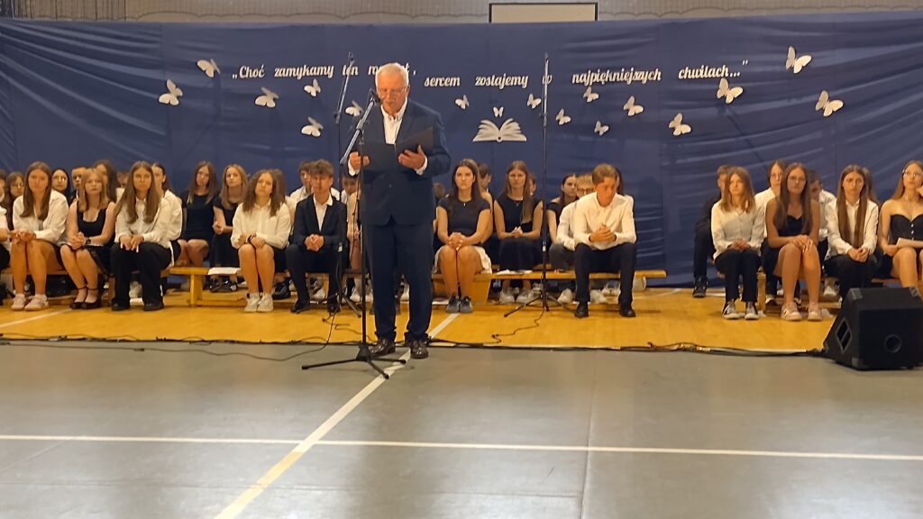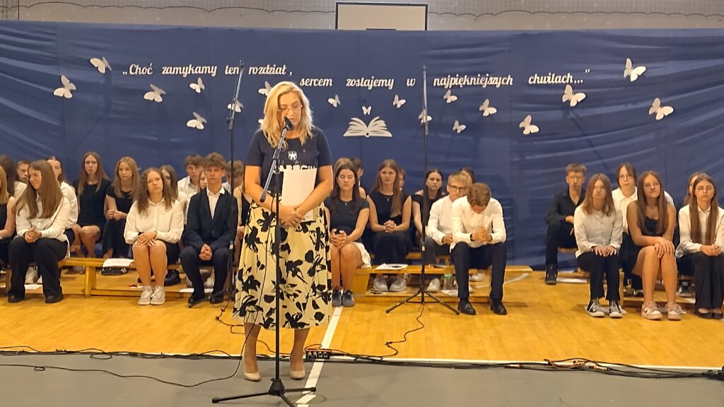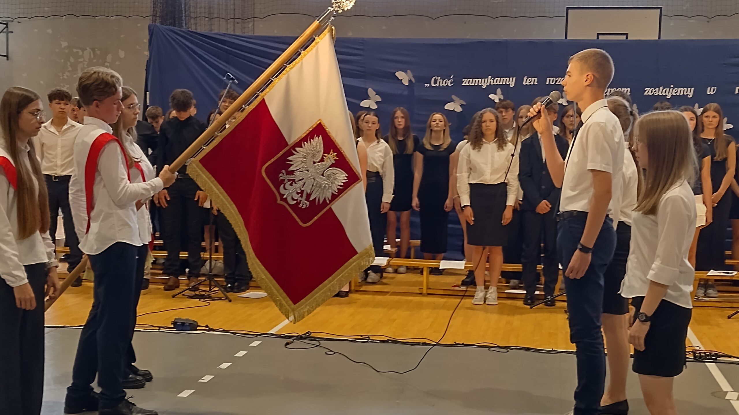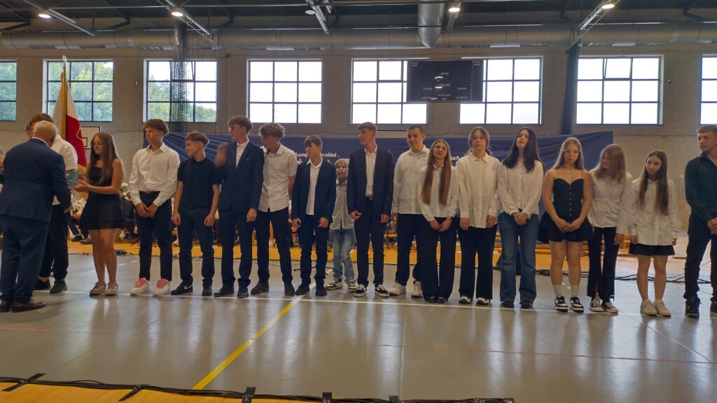 26 czerwca 2025 roku o godzinie 16.00 rozpoczęła się uroczystość zakończenie nauki przez klasy VIII. Część oficjalną otworzył dyrektor szkoły Marek Durczak, a list z gratulacjami dla absolwentów od Burmistrz Jarocina Urszuli Wyremblewskiej Korzyniewskiej odczytała radna Katarzyna Wyderkiewicz. Do życzeń dołączyła się również przewodnicząca Rady Rodziców naszej szkoły Edyta Szymandera. Podczas części oficjalnej nastąpiło przekazanie sztandaru nowym pocztom. Aleksandra Moskalik z klasy VIII a oraz Dominik Ratajczak z klasy VIII d zostali uhonorowani wpisem do Złotej Księgi szkoły. Następnie pedagog szkolna Ewa Król wraz z Edytą Szymanderą wręczyły nagrodę „Wystrzałowy uczeń” i „Kolega na medal”. Nagrodzono również najlepszych siatkarzy, zespół aerobiku oraz młodzież działającą w Samorządzie Uczniowskim. Część oficjalną zakończono wręczeniem świadectw z wyróżnieniem oraz podziękowań dla rodziców. W części artystycznej młodzież zaprezentowała swoje talenty sceniczne, a każdemu uczącemu ich nauczycielowi wręczono pamiątkowy bilet lotniczy.